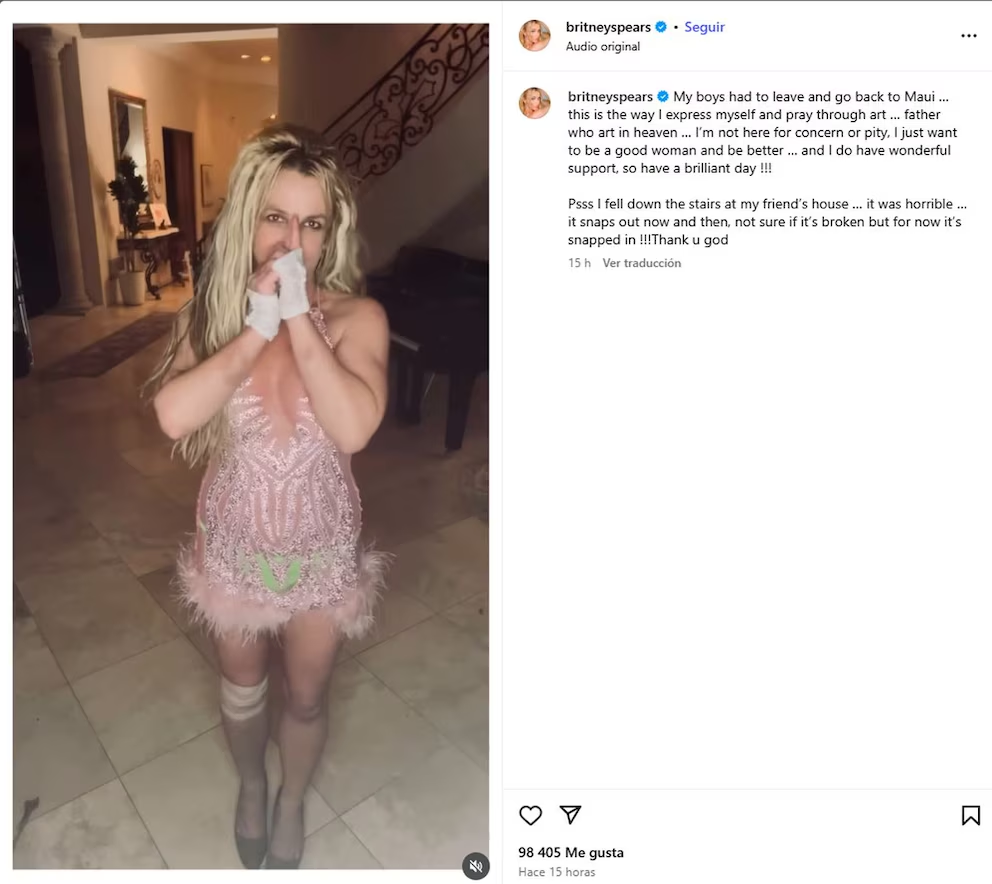 In the video, Spears expressed gratitude for not sustaining a more serious injury and highlighted the support she receives from her fans and family (Instagram/@britneyspears)